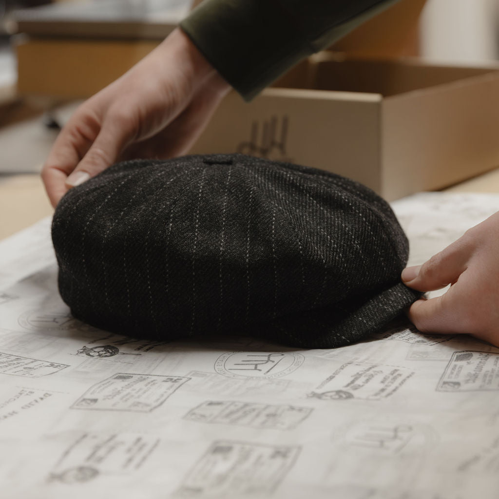 The Shelby Baker Boy Caps Limited Edition captures a moment in time when style was sharp and ambition ran deep. Crafted in a striking Charcoal Pinstripe cloth and shaped in our three best selling Newsboy styles, each cap channels the unmistakable presence of Tommy Shelby in Peaky Blinders.
